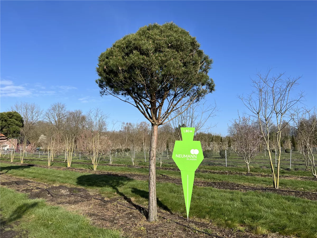 Die Wald-Kiefer (Pinus sylvestris) ist ein Großbaum, welcher schirmförmig wächst und gewöhnlich eine Höhe von ca. 25 m und eine Breite von ca. 8 m erreicht. Ihre nadelförmigen, gedrehten Blätter haben eine blau-graue Färbung. Dieses Gehölz ist gut frostverträglich. Sie bevorzugt einen sonnigen Standort. An den Boden stellt die Wald-Kiefer keine besonderen Ansprüche.