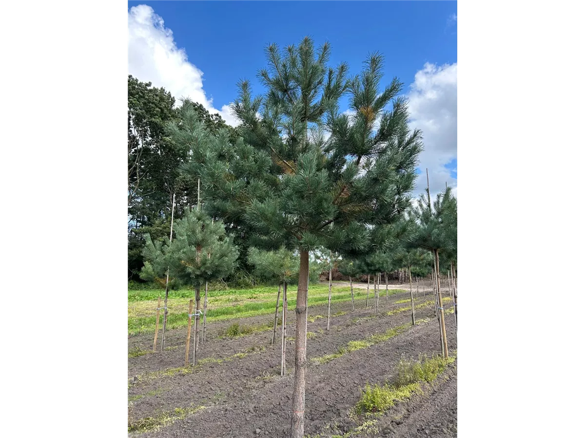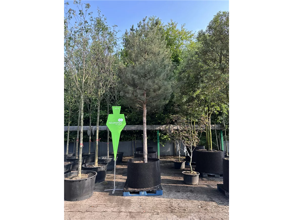 Die Wald-Kiefer (Pinus sylvestris) ist ein Großbaum, welcher schirmförmig wächst und gewöhnlich eine Höhe von ca. 25 m und eine Breite von ca. 8 m erreicht. Ihre nadelförmigen, gedrehten Blätter haben eine blau-graue Färbung. Dieses Gehölz ist gut frostverträglich. Sie bevorzugt einen sonnigen Standort. An den Boden stellt die Wald-Kiefer keine besonderen Ansprüche.