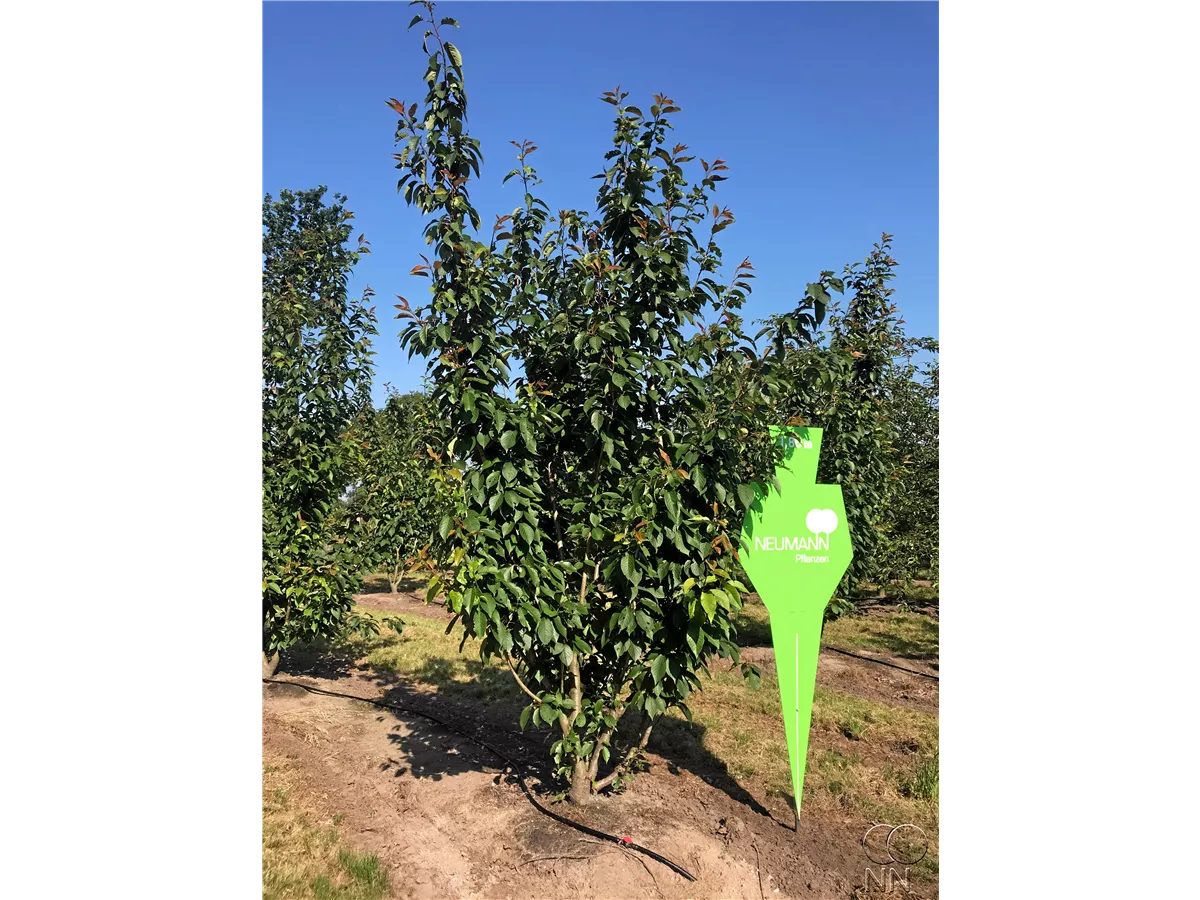 Japanische Nelkenkirsche 'Kanzan' ist ein aufrecht und trichterförmig wachsender Kleinbaum. Sie erreicht gewöhnlich eine Höhe von 7 - 10 m und wird ca. 5 - 8 m breit. Rasch wachsend. In der Regel wächst sie 20 - 30 cm pro Jahr.
