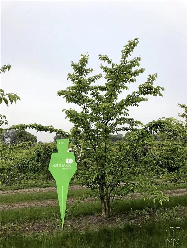 Die Japanische Maienkirsche (Prunus x yedoensis) ist ein aufrechter, ausladender Kleinbaum, der weiße, in Trauben angeordnete Blüten mit einem leichten Duft hervorbringt. Sie erscheinen von Ende März bis April. Aus diesen gehen schwarze, runde Früchte hervor. Sie sind klein und verströmen einen leichten Duft. Zudem trägt die Japanische Maienkirsche, eiförmige, mittelgrüne Blätter. An einem sonnigen, windgeschützten Standort mit nährstoffreichem, sandigem, lehmigem Boden erreicht sie gewöhnlich eine Höhe von ca. 10 m und wird ca. 7 m breit.