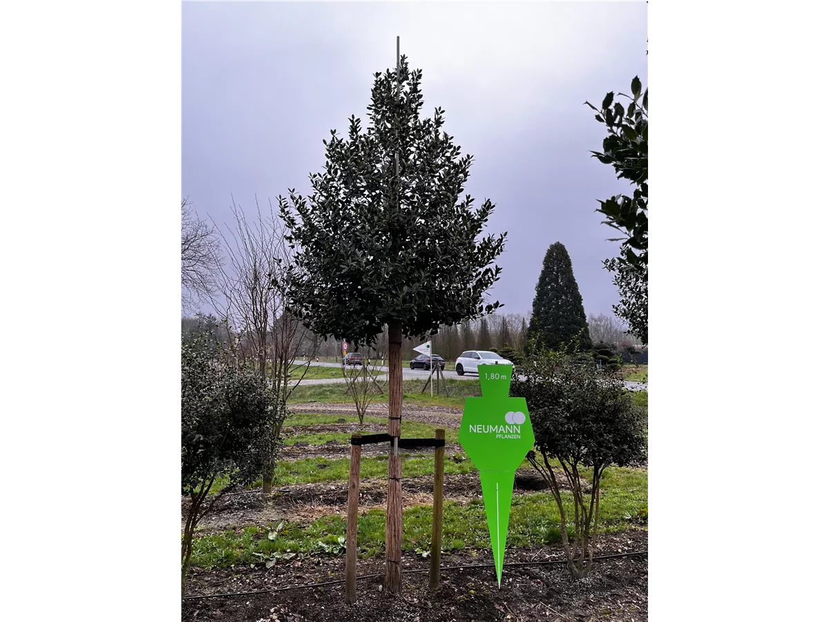 Die immergrünen Blätter der Stechpalme 'Nellie R.Stevens' sind dunkelgrün, eiförmig.