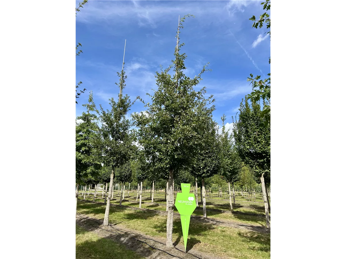 Die Zerr-Eiche (Quercus cerris) ist ein kegelförmiger, breiter Großbaum mit dekorativen, hellgrünen Früchten. Zudem trägt die Zerr-Eiche, glänzende, lanzettliche, dunkelgrüne Blätter. An einem sonnigen Standort mit durchlässigem, kalkhaltigem Boden erreicht sie gewöhnlich eine Höhe von ca. 30 m und wird ca. 20 m breit.