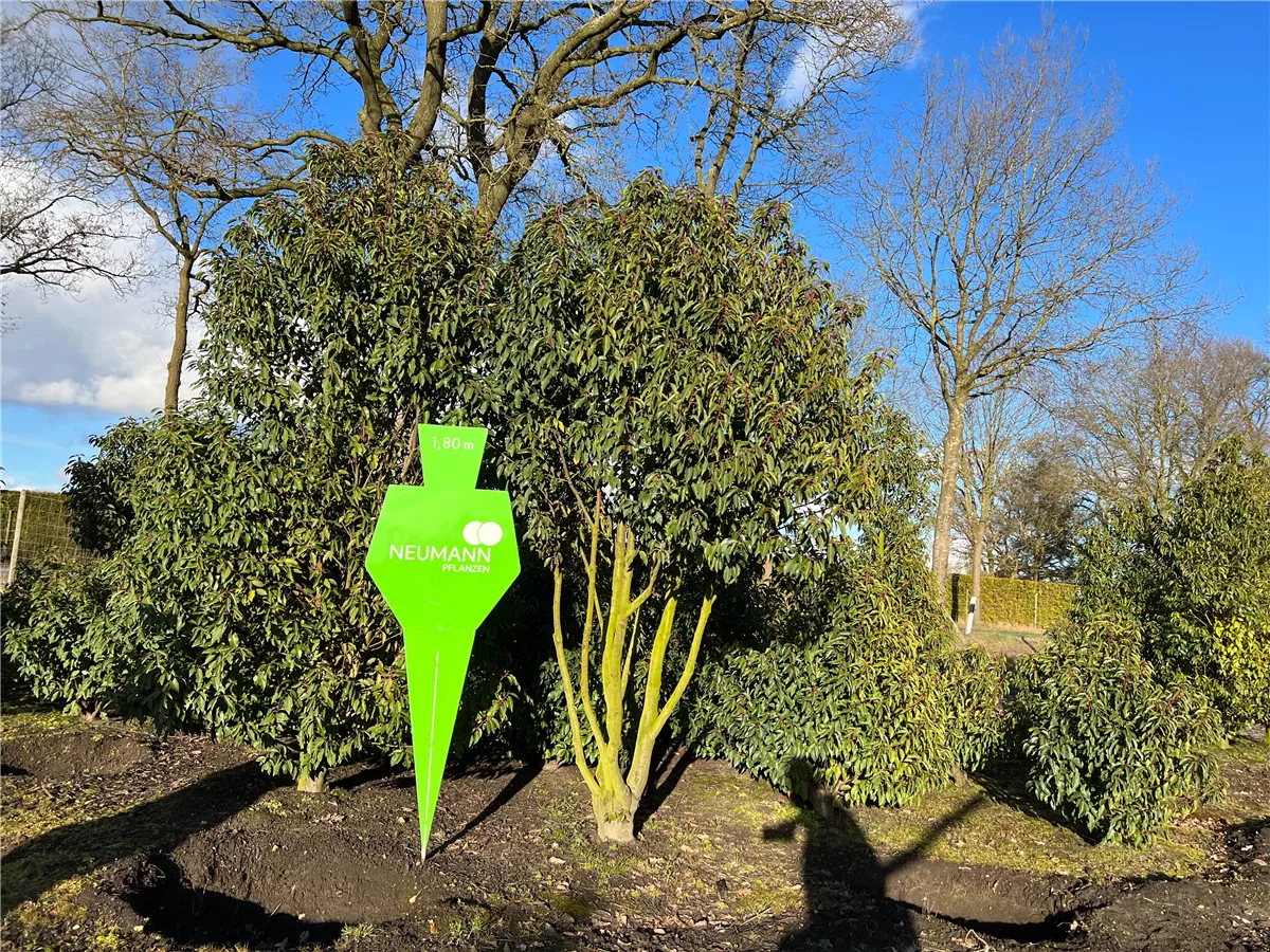 Prunus lusitanica 'Angustifolia' ist ein Herzwurzler und bildet, je nach Boden, ausladend verzweigte Wurzeln.