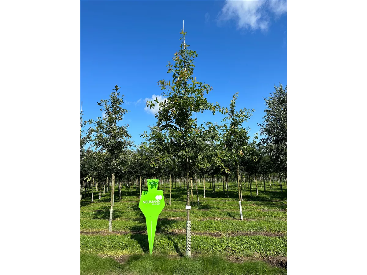 Die Traubeneiche (Quercus petraea) ist ein aufrechter, breiter Großbaum mit dekorativen, braunen, ovalen Früchten. Diesen voraus bringt sie von Mai bis Juni hellgrüne Blüten hervor. Zudem trägt die Traubeneiche, glänzende, eiförmige, dunkelgrüne Blätter. An einem sonnigen bis halbschattigen Standort erreicht sie gewöhnlich eine Höhe von ca. 35 m und wird ca. 20 m breit. An den Boden stellt die Traubeneiche keine besonderen Ansprüche.