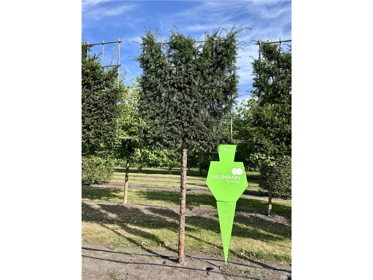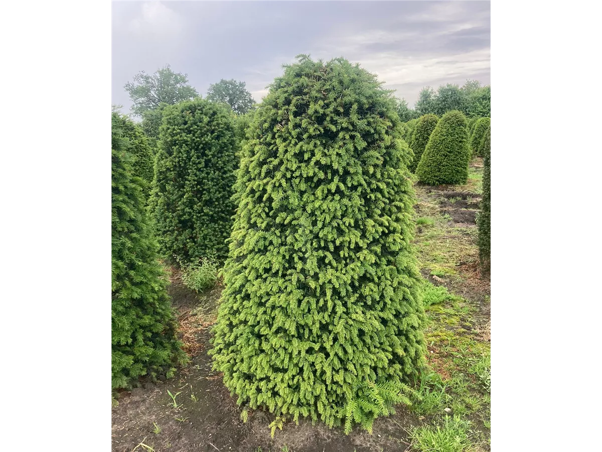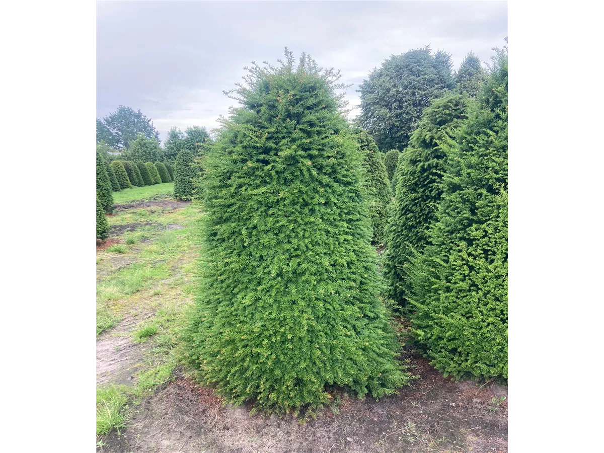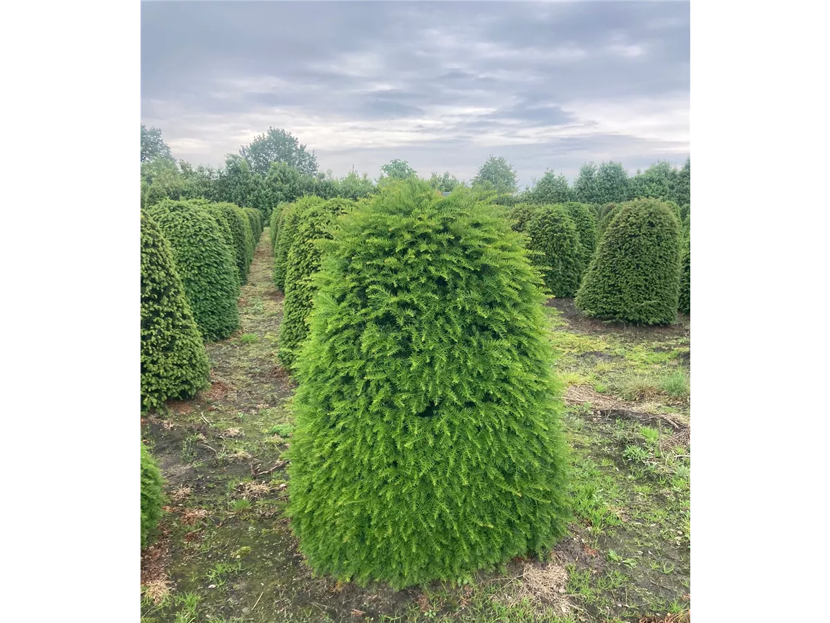 Die Heimische Eibe (Taxus baccata) ist ein Kleinbaum, welcher aufrecht wächst und gewöhnlich eine Höhe von ca. 15 m und eine Breite von ca. 10 m erreicht. Ihre nadelförmigen Blätter haben eine dunkelgrüne Färbung. Dekorative rote Zapfen zieren Taxus baccata ab September. Dieses Gehölz ist gut frostverträglich.Sie bevorzugt durchlässigen, kalkhaltigen, nährstoffreichen Boden in sonniger bis halbschattiger Lage.