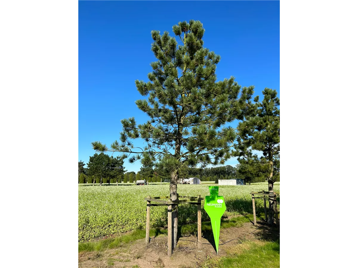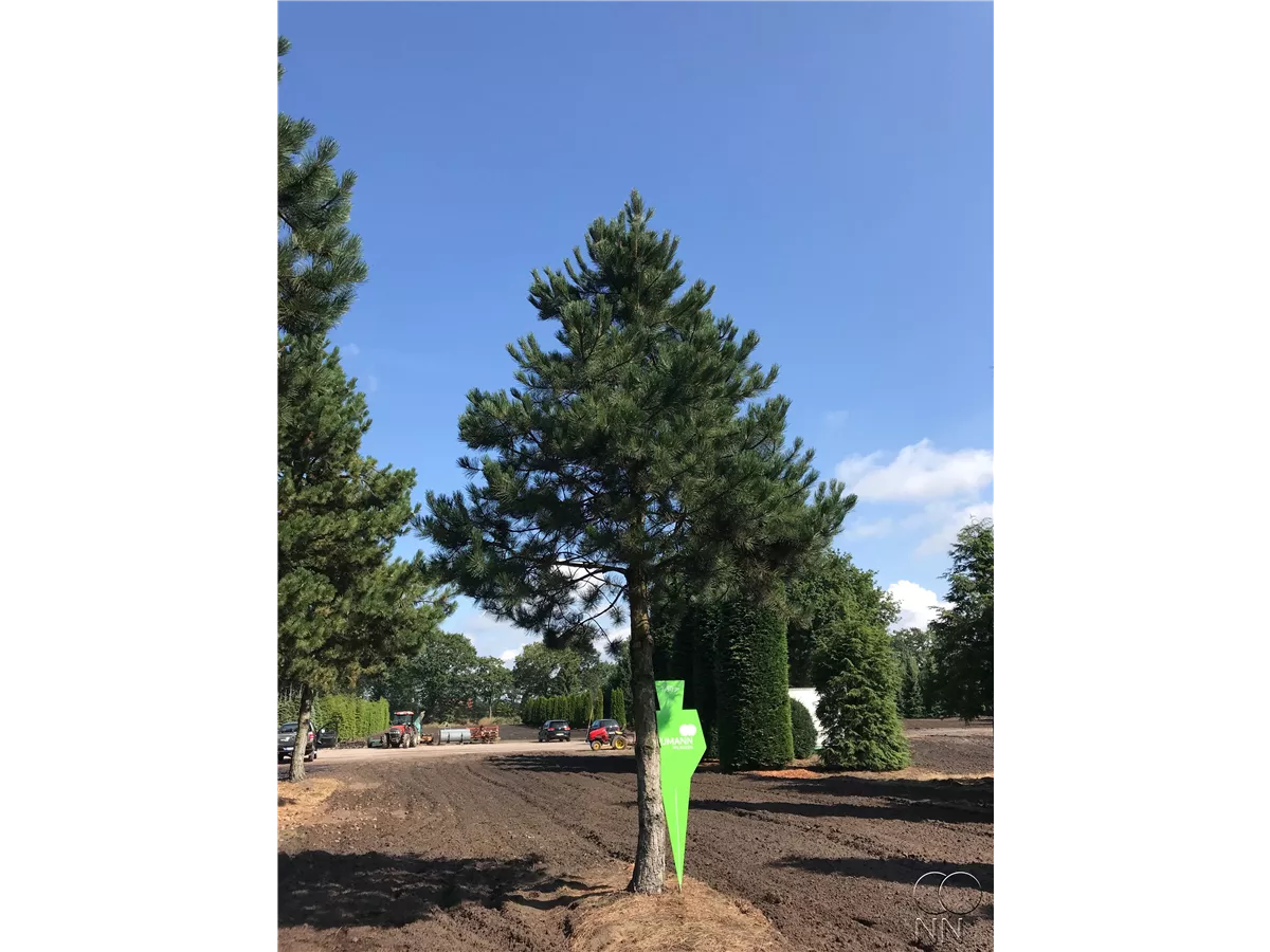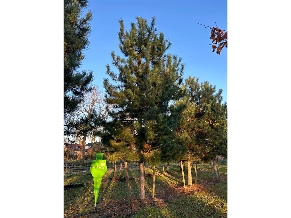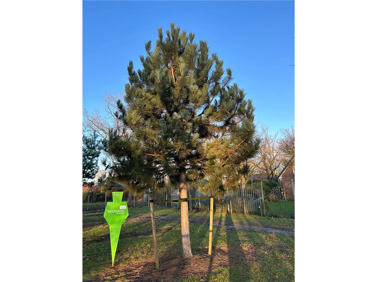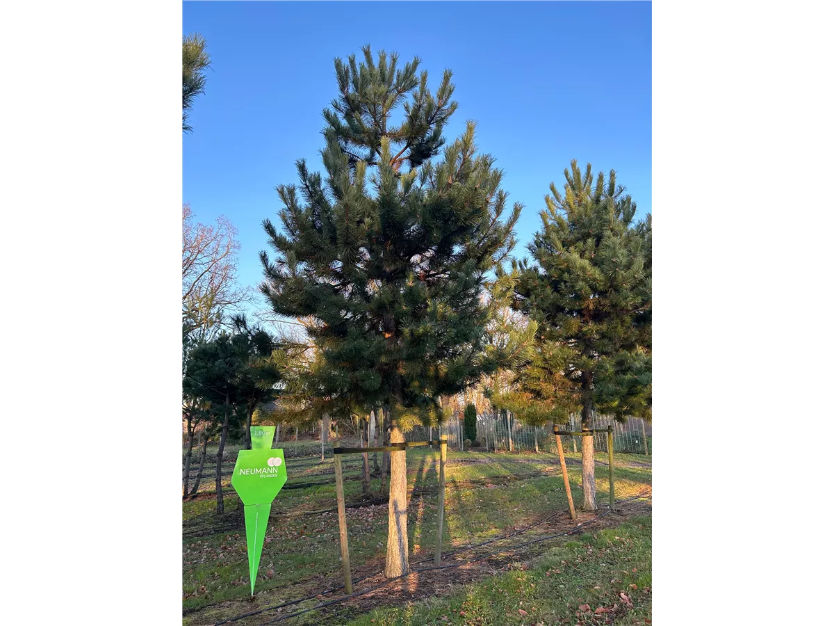Die Österreichische Schwarz-Kiefer (Pinus nigra) ist ein Großbaum, welcher kegelförmig, malerisch wächst und gewöhnlich eine Höhe von ca. 30 m und eine Breite von ca. 10 m erreicht. Ihre nadelförmigen Blätter haben eine dunkelgrüne Färbung. Dekorative hellbraune Zapfen zieren Pinus nigra ssp. nigra ab September. Dieses Gehölz ist gut frostverträglich. Sie bevorzugt einen sonnigen Standort. An den Boden stellt die Österreichische Schwarz-Kiefer keine besonderen Ansprüche.