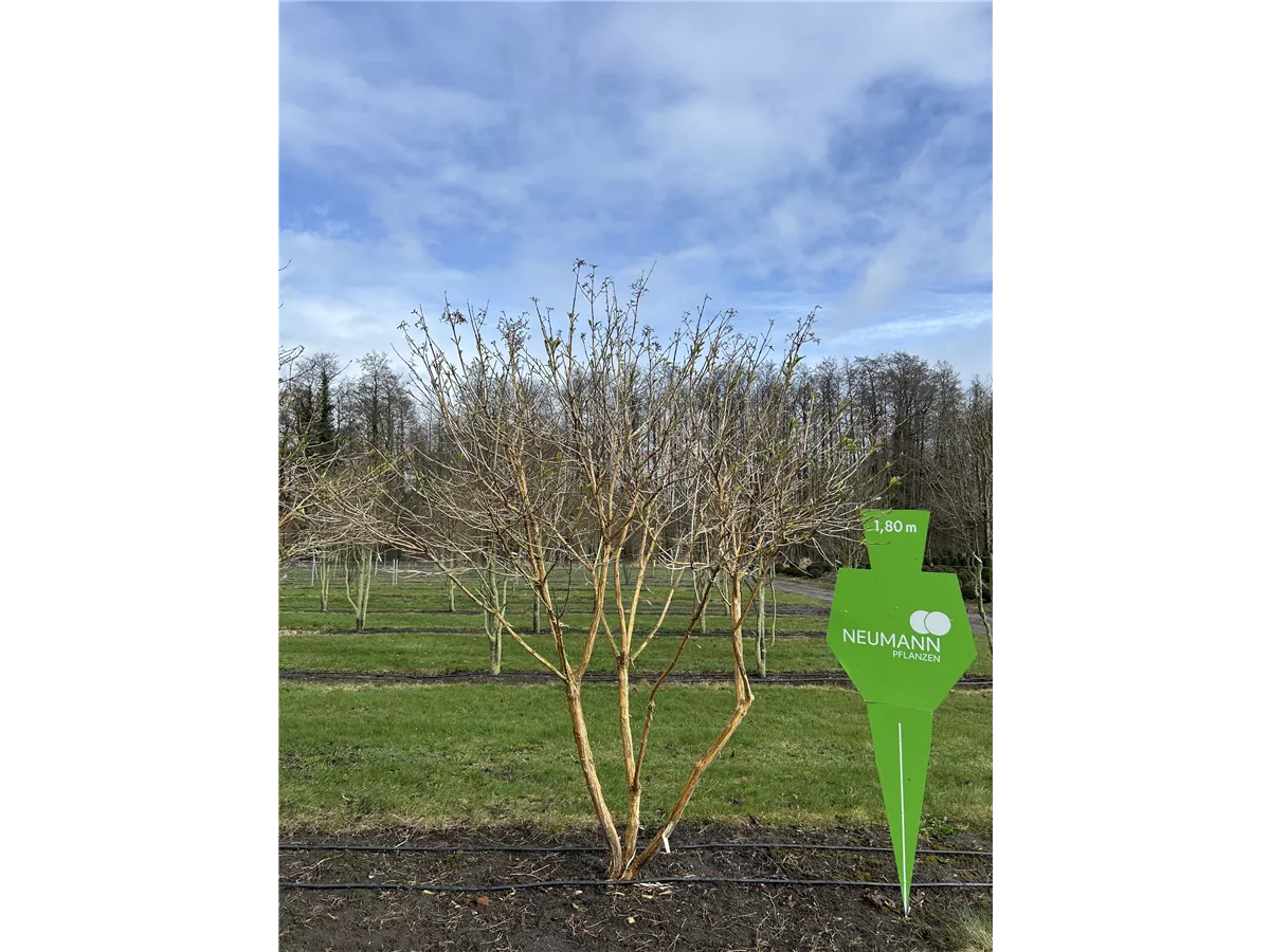 Braun-gelb, abblätternde Rinde macht diese Pflanze zu einem Blickfang in jedem Garten.