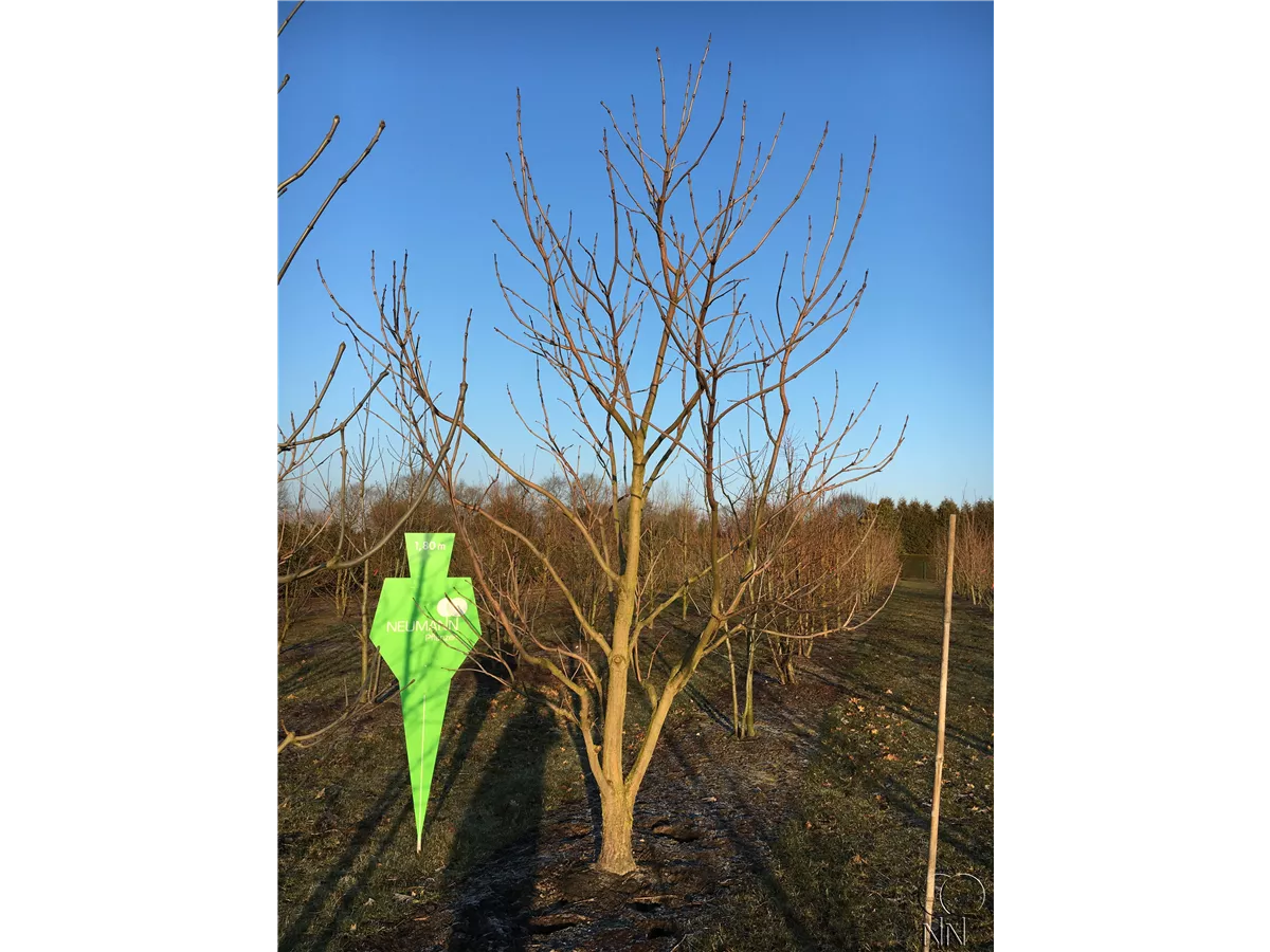 Dunkelgrau, längsgefurchte Rinde macht diese Pflanze zu einem Blickfang in jedem Garten.