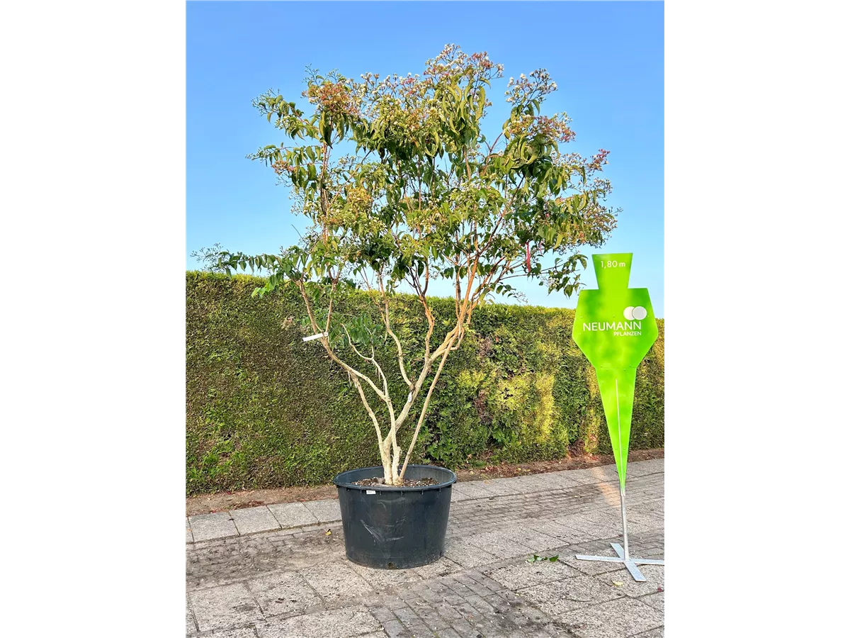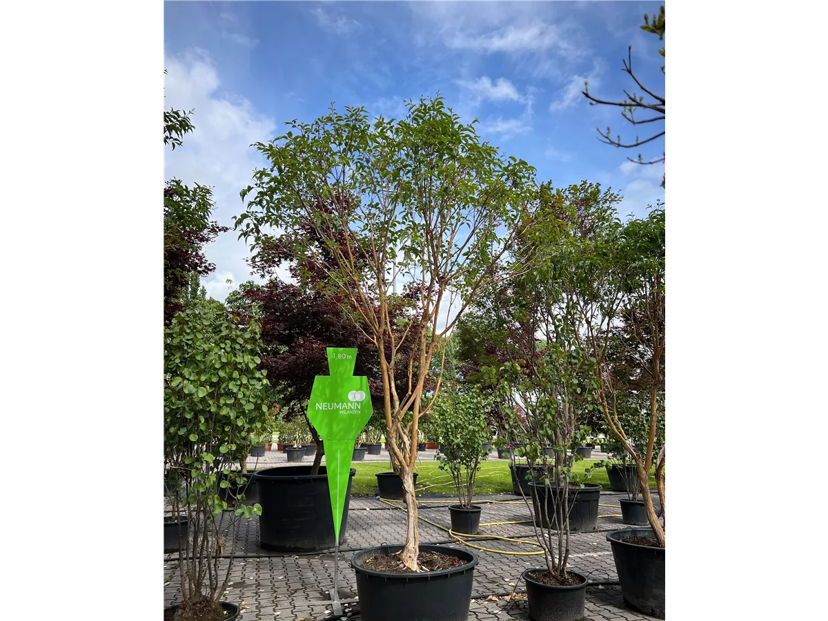 Braun-gelb, abblätternde Rinde macht diese Pflanze zu einem Blickfang in jedem Garten.
