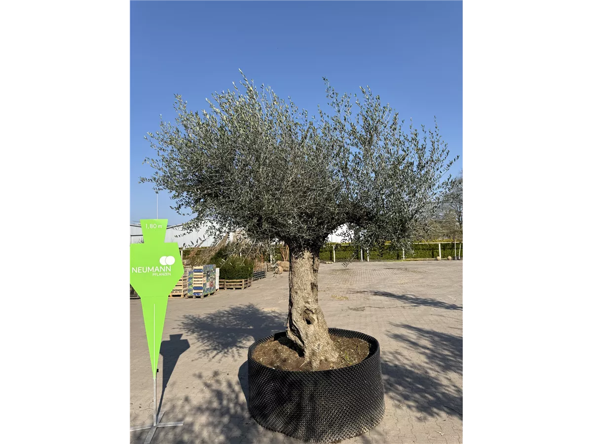 Der Olivenbaum (Olea europaea) ist eine sehr beliebte, immergrüne Kübelpflanze, deren grünen bis schwarzen Früchte einen aromatischen Geschmack haben. Die grau-grünen Blätter sind lanzettlich. Der Standort sollte möglichst sonnig sein. Eine durchlässige Erde ist dabei ideal. Bei günstigen Bedingungen erreicht der Olivenbaum eine Höhe von ca. 2 m und wird bis zu 1,5 m breit.