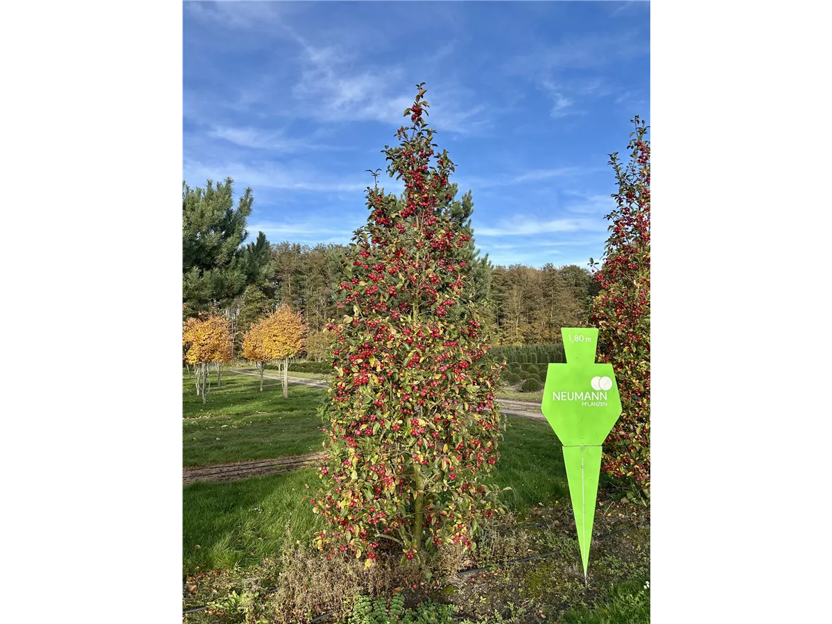 The orange red, round fruits from the Malus 'Evereste'® are especially decorative. They appear from August onwards and are small.